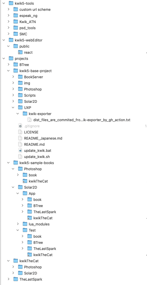 the modules are installed by the update_kwik.sh/.bat script. kwik-plugin as kwiksher, and external-lua_modules such gtween/btween, nanostores etc
